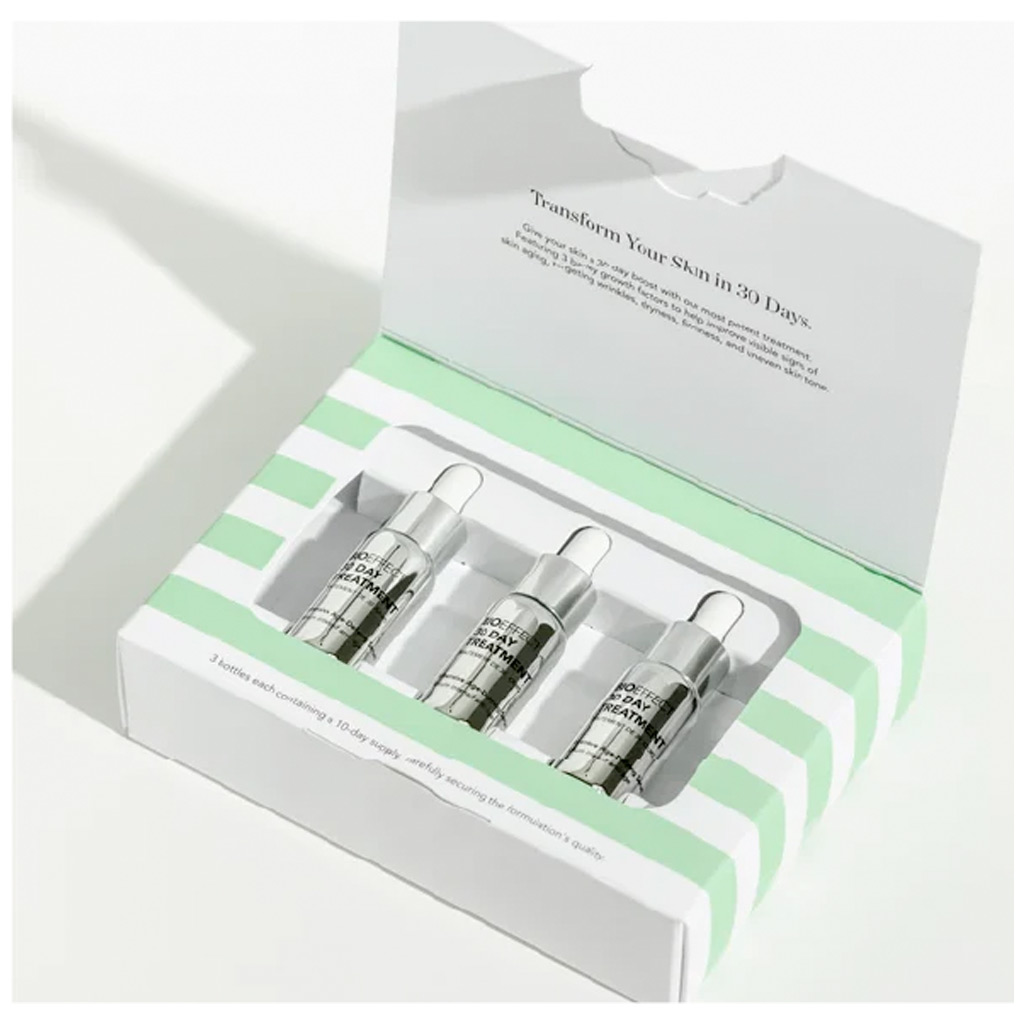 Los tres pequeños frascos, cada uno con una dosis para 10 días, son fáciles de transportar y aplicar (utilizar mañana y noche para obtener mejores resultados).