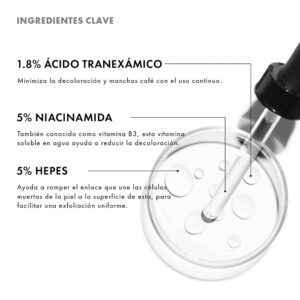 1.8% de Ácido tranexámico: Minimiza la decoloración y manchas café con el uso continuo.