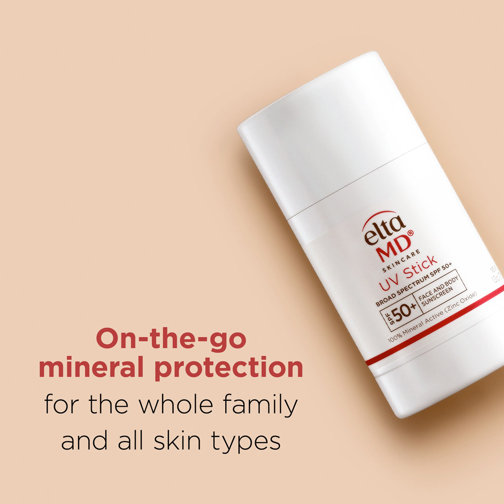EltaMD UV Stick Broad-Spectrum SPF 50+ es un protector solar en barra 100 % mineral con protección antioxidante que es fácil de aplicar e ideal para usar en cualquier lugar y para volver a aplicar. La fórmula sin suciedad está dermatológicamente probada y es ideal para adultos y niños. UV Stick no contiene fragancias, parabenos ni colorantes, es hipoalergénico y no comedogénico. (peso neto 1,3 oz/37 g)