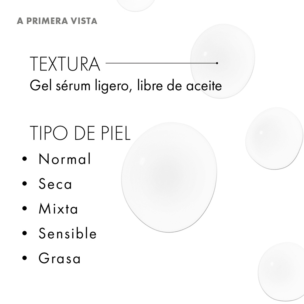 Sérum hidratante sin aceite, con vitamina B5 y ácido hialurónico que repone los niveles de hidratación y recupera la luminosidad para obtener una piel más suave.