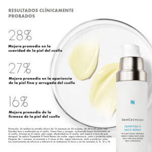 Crema diaria con retinol para tensar, específicamente formulada para reafirmar el cuello, Tripeptide-R Neck Repair está diseñada para abordar los signos tempranos a avanzados del envejecimiento del cuello, incluyendo líneas y arrugas debido a movimientos repetitivos al mirar hacia abajo con el uso frecuente de los dispositivos móviles. Formulada con un 0,2% de retinol puro de liberación lenta, un concentrado de tripéptido al 2,5% y un complejo de glaucina al 5,0%, esta tecnología correctiva está clínicamente demostrada para abordar múltiples signos de envejecimiento visible del cuello. Tripeptide-R Neck Repair es un complemento para tratamientos profesionales.