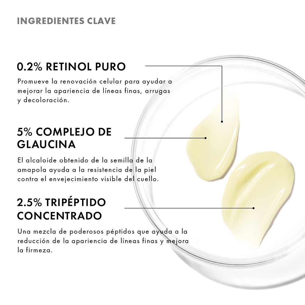 Crema de tratamiento correctivo con retinol, para reafirmar el cuello, que se enfoca en los signos tempranos y avanzados del envejecimiento visible del cuello.