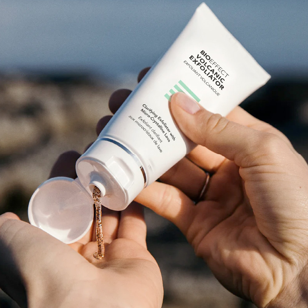 Exfoliante suave con microcristales de lava para limpiar y afinar la textura de la piel.